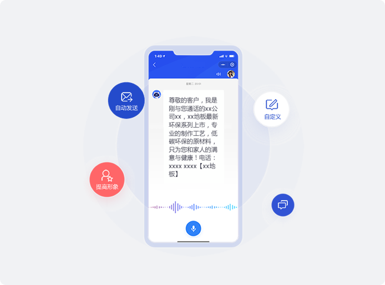 支持自定义短信内容,客户来电结束后自动向客户发送短信,随时随地沟通,塑造良好企业印象